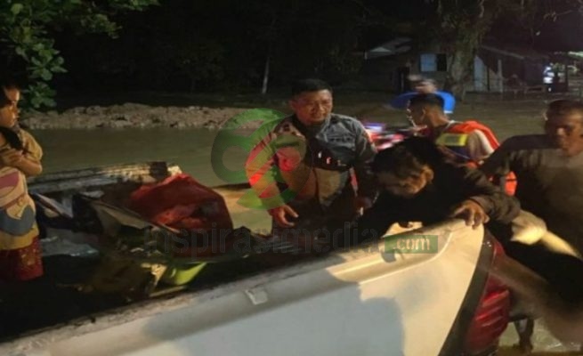 Banjir Landa Karangan Seberang, Polsek Sangkulirang Turun Tangan Selamatkan Warga